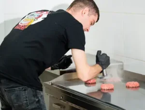 Gaizka, desde su propia cocina, cocinando y sirviendo hamburguesas con una idea clara en la cabeza y muchas ganas de hacerlas bien.